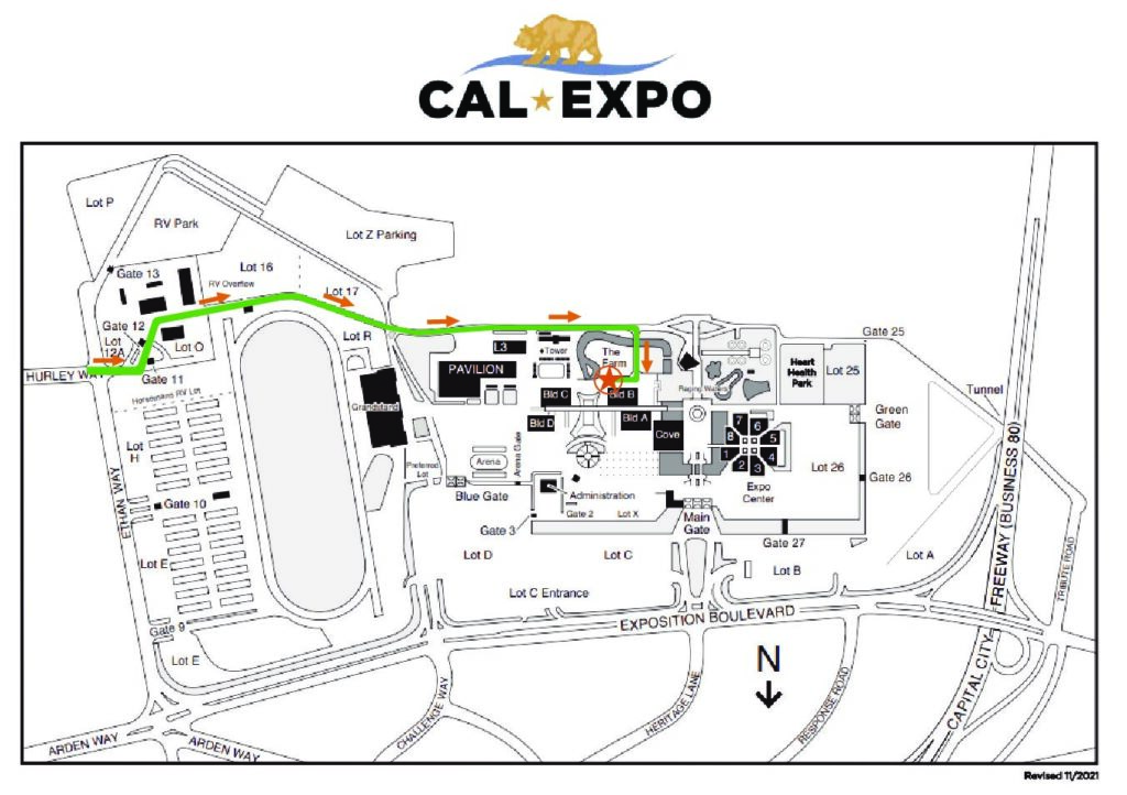 Schools must provide transportation for students. Vehicles are able to park near Building B, as shown on the Cal Expo Campus Map below.